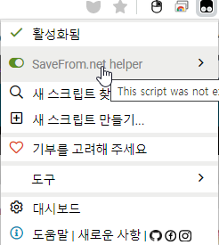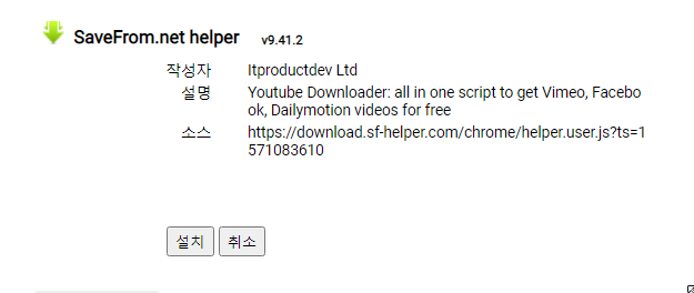 2, 아래 URL로 접속하여 유튜브 동영상을 다운로드를 할 수 있는 스크립트를 설치합니다.