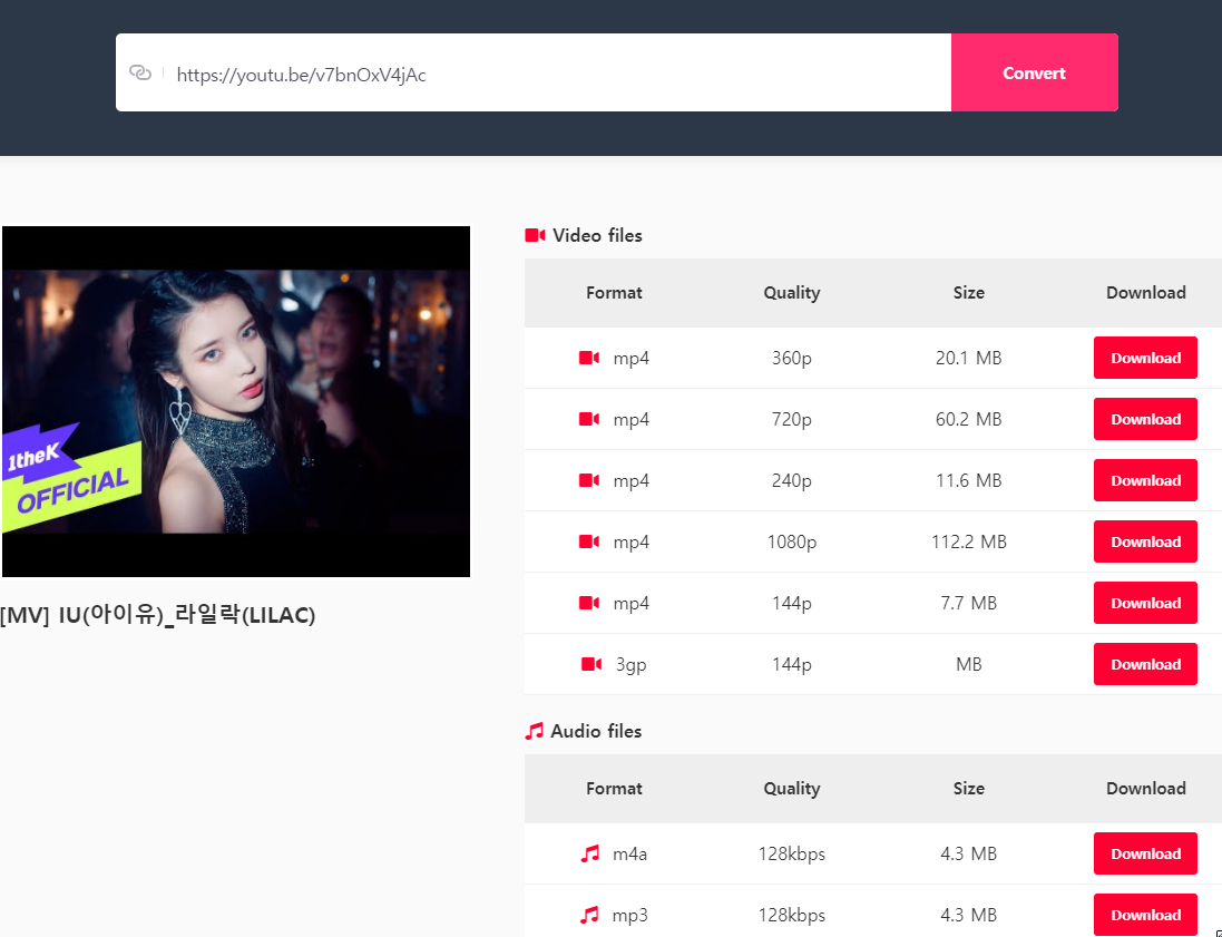 그렇게 하시면 영상 파일 다운로드 버튼과 음성 파일 다운로드 버튼이 표시됩니다.