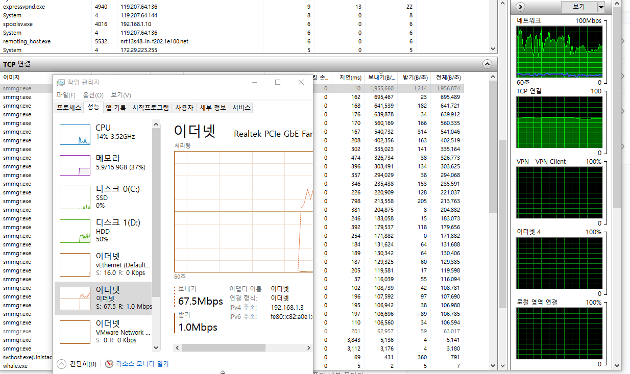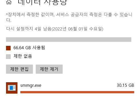 프로그램이 실행중이 아니더라도 Smmgr.exe 라는 프로스세를 통해 지속적으로 업로드 트래픽을 유발합니다.