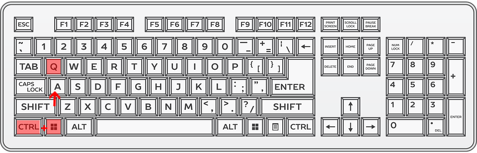 1, 키보드의 단축키 Ctrl+Windows+Q 를 눌러 주세요.(각 키는 누른상태로 순서대로)