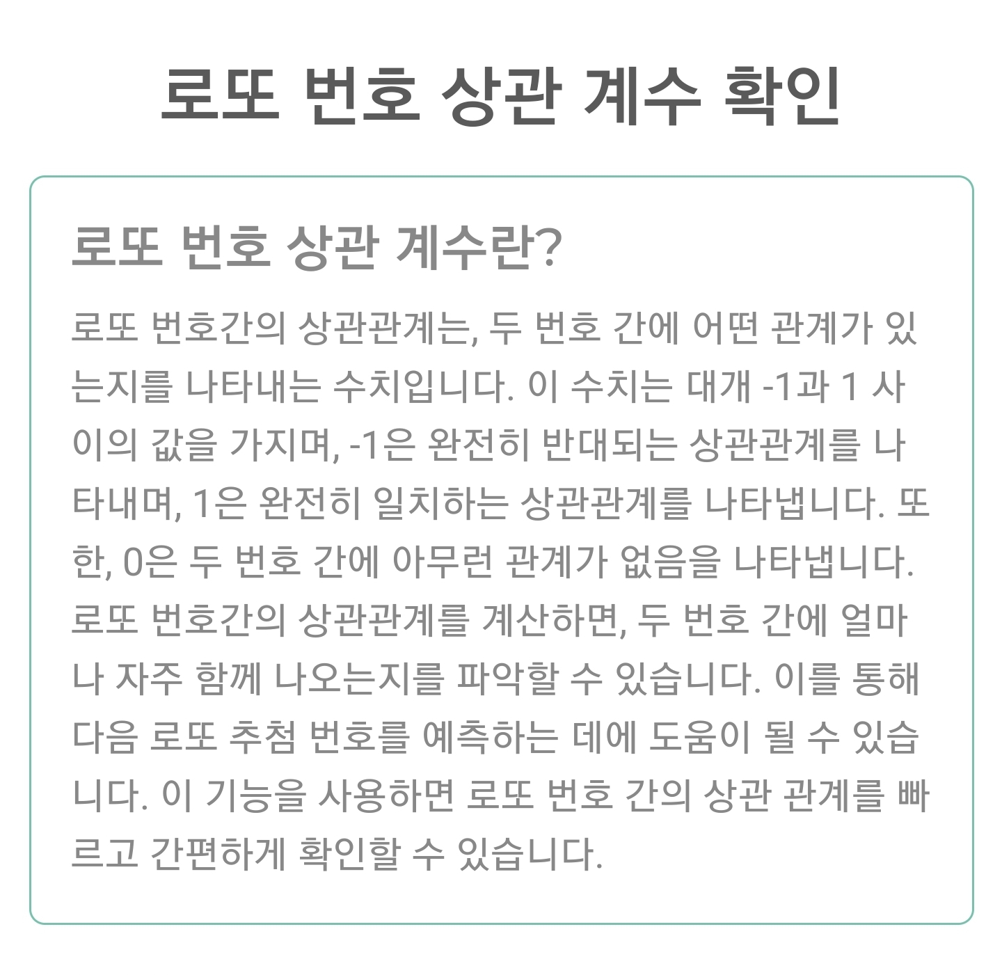 제공되는 메뉴는 최신추첨결과/랜덤번호생성/이전회차조회/역대당첨번호/번호출현순위/상관관계계수/시뮬레이션추천
