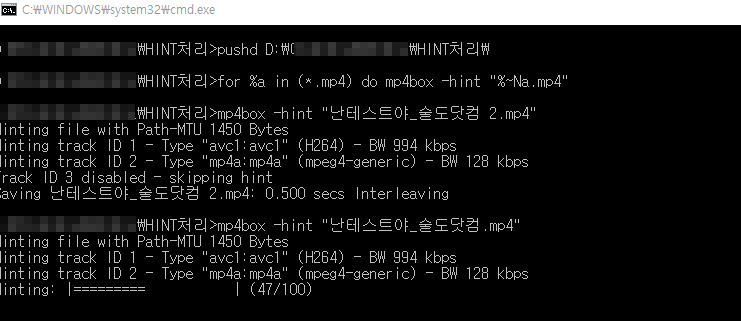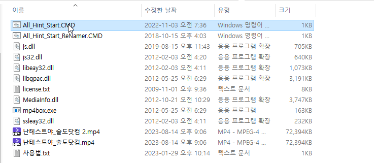 압축해제된 폴더에 힌트처리 할 MP4파일들을 넣고 All_Hint_Start.CMD 파일을 더블클릭하시면