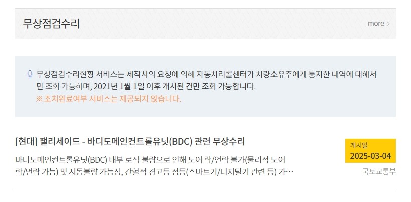 - BDC(Body Domain Controller) 모듈 설계 불량으로 추정
