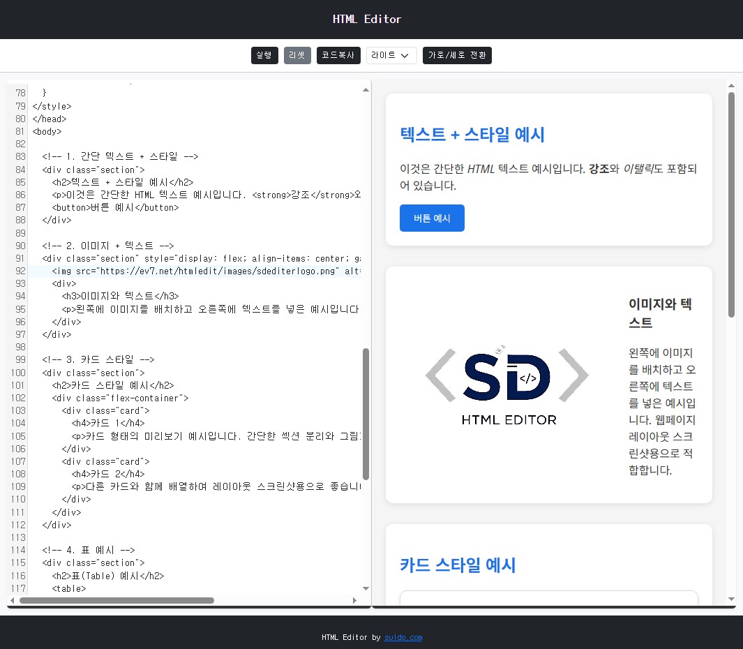- 실시간 미리보기: HTML 코드를 작성하면서 바로 결과를 확인할 수 있어 수정과 테스트가 즉시 가능합니다.