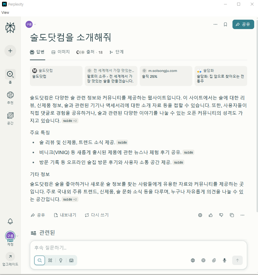 Perplexity AI는 사용자가 질문을 입력하면, 웹 데이터를 기반으로 실시간으로 답변을 제공하는 인공지능 기반 지식 검색 서비스입니다. 장점은: